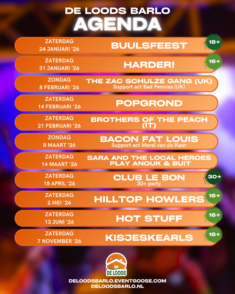 De agenda van De Loods Barlo is weer geüpdatet! 🪩🧡