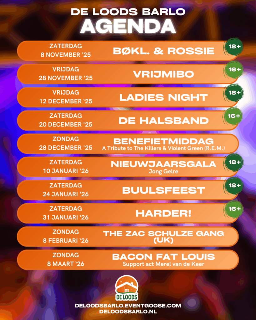 🎟️ Tickets voor BØKL. & Rossie, Ladies Night, De Halsband en The Zac Schulze Gang zijn al verkrijgbaar via deloodsbarlo.eventgoose.com