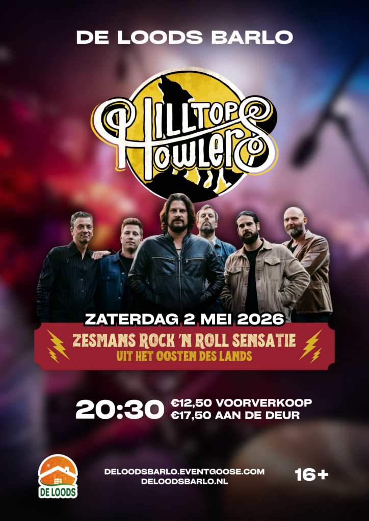 Op zaterdag 2 mei 2026 komt Hilltop Howlers naar De Loods Barlo! ⚡ De bandleden hebben hun sporen verdiend in verschillende Nederlandse bands, waaronder Jovink & The Voederbietels, The Bloody Honkies, The Backcorner Boogie Band, Automatic Sam en Shaking Godspeed. Hilltop Howlers heeft een uniek geluid dat beïnvloed is door rootsy rock-‘n-roll, psychedelische rock en Britpop 🎸